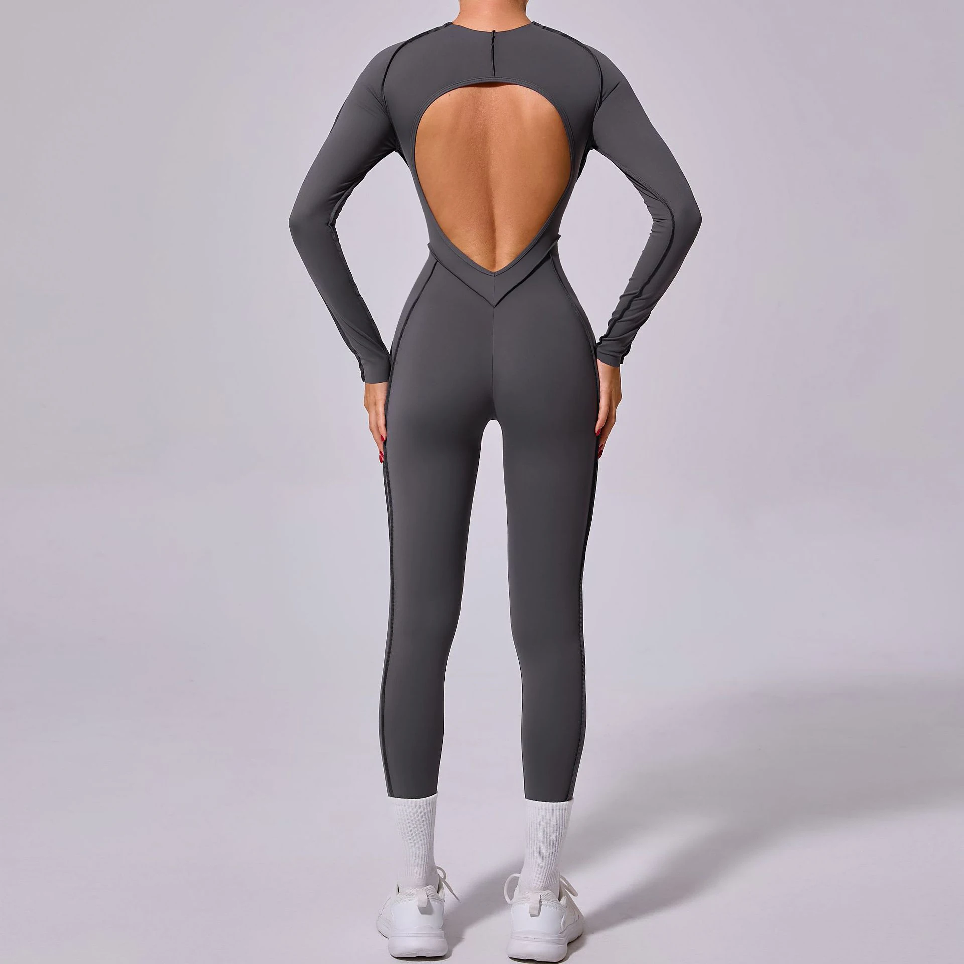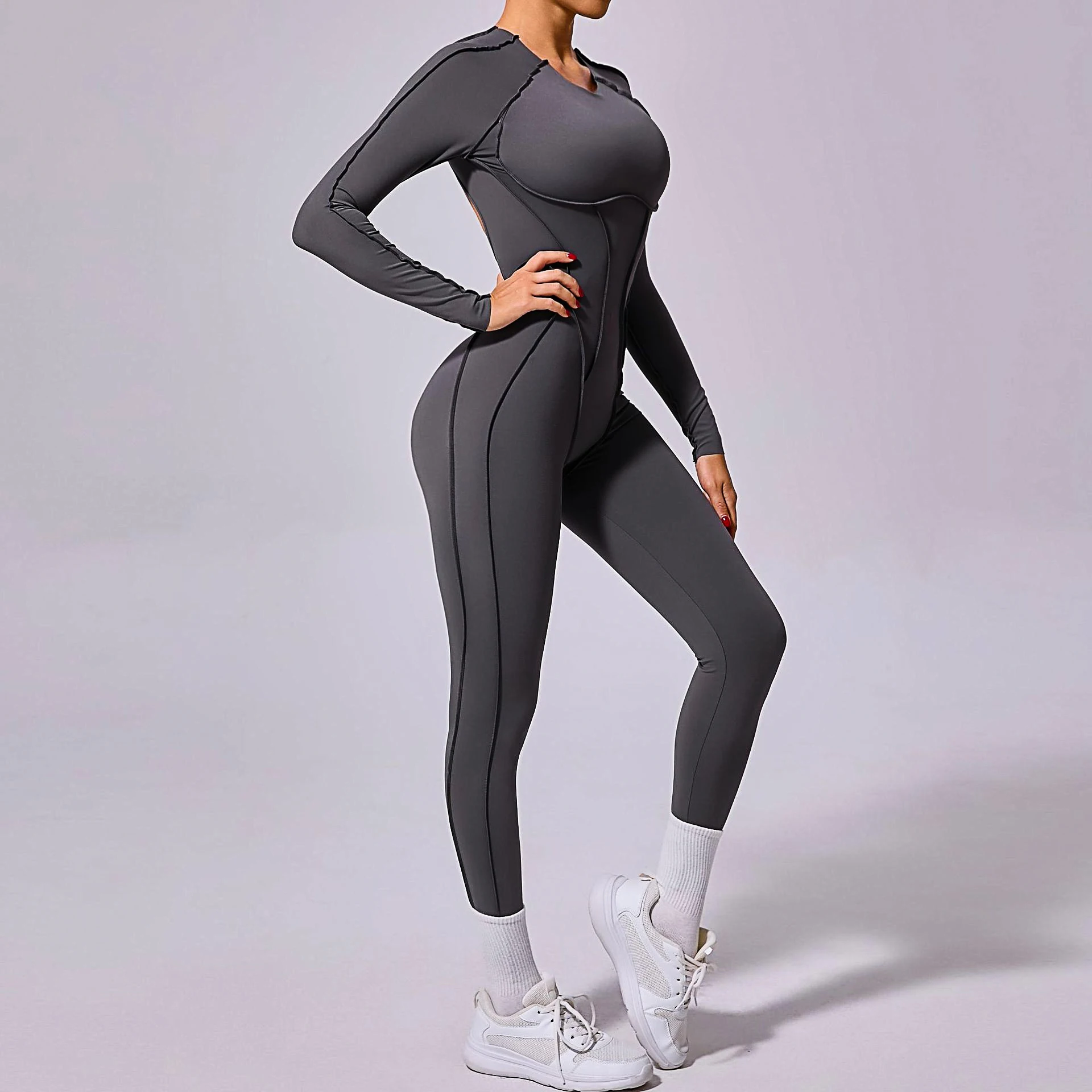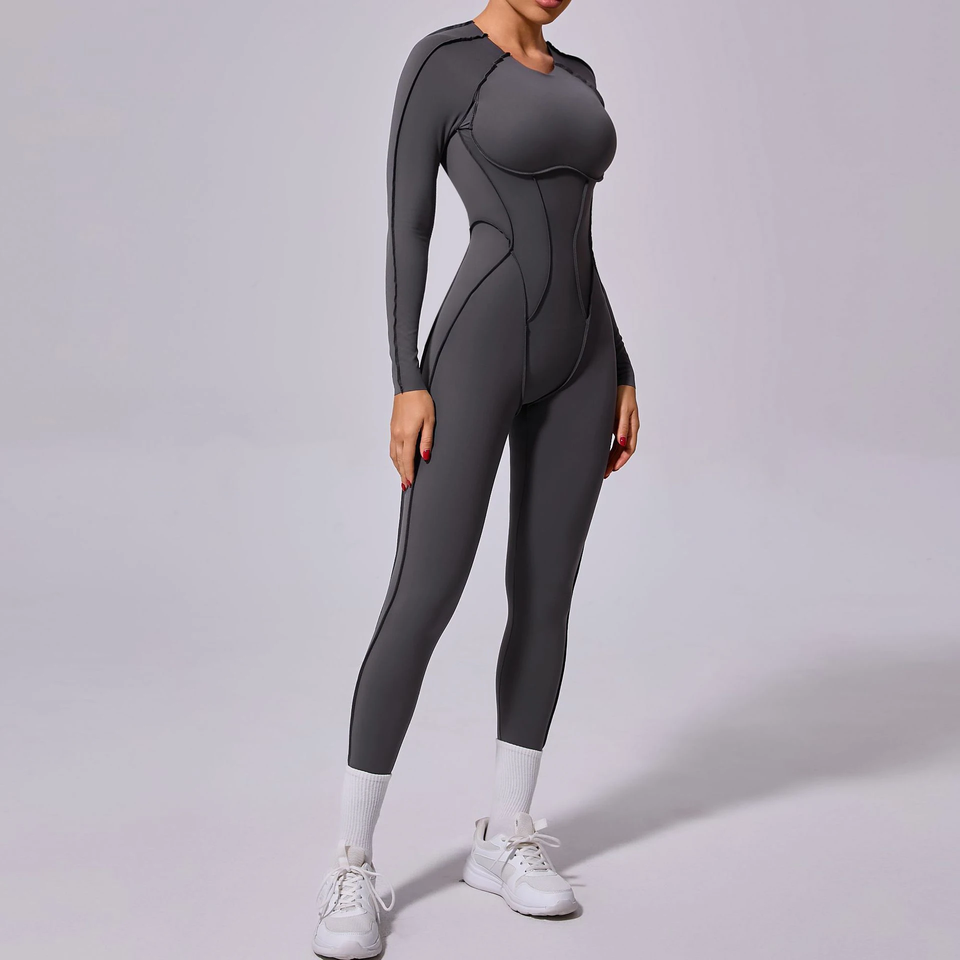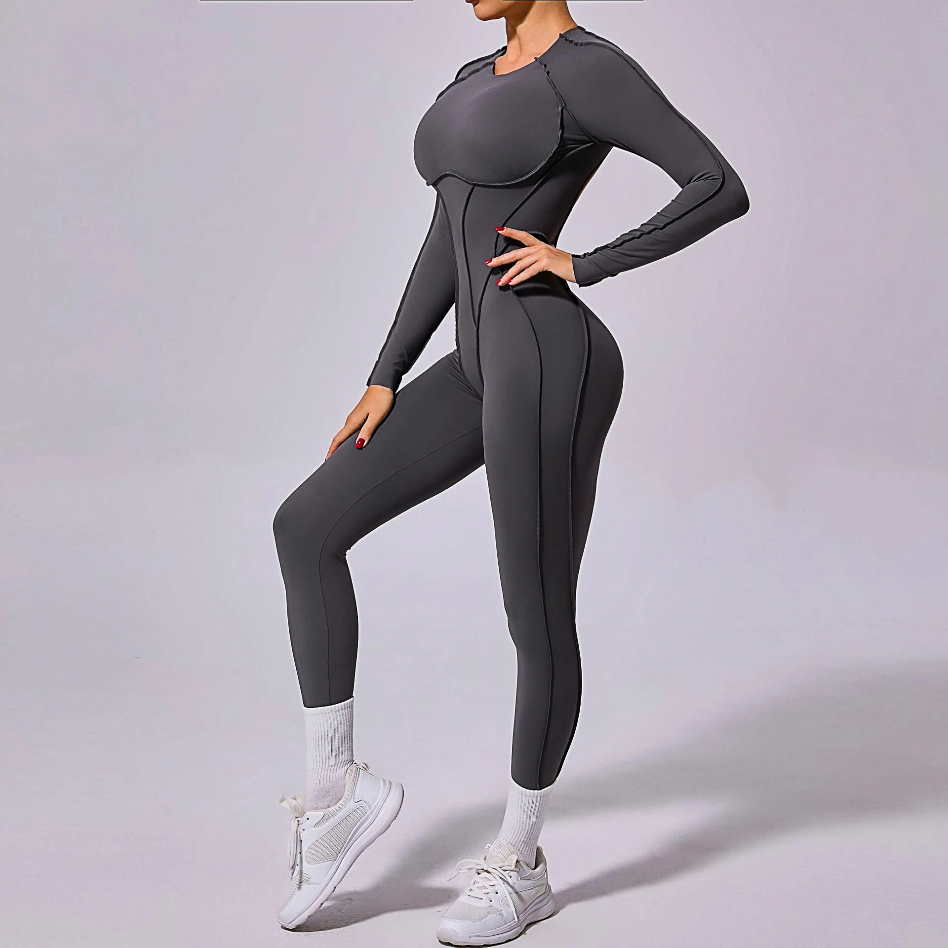 Women's Lightweight Yoga Jumpsuit with Compression Soft Long Sleeve Stretchy Sports Bodysuit Jumpsuit